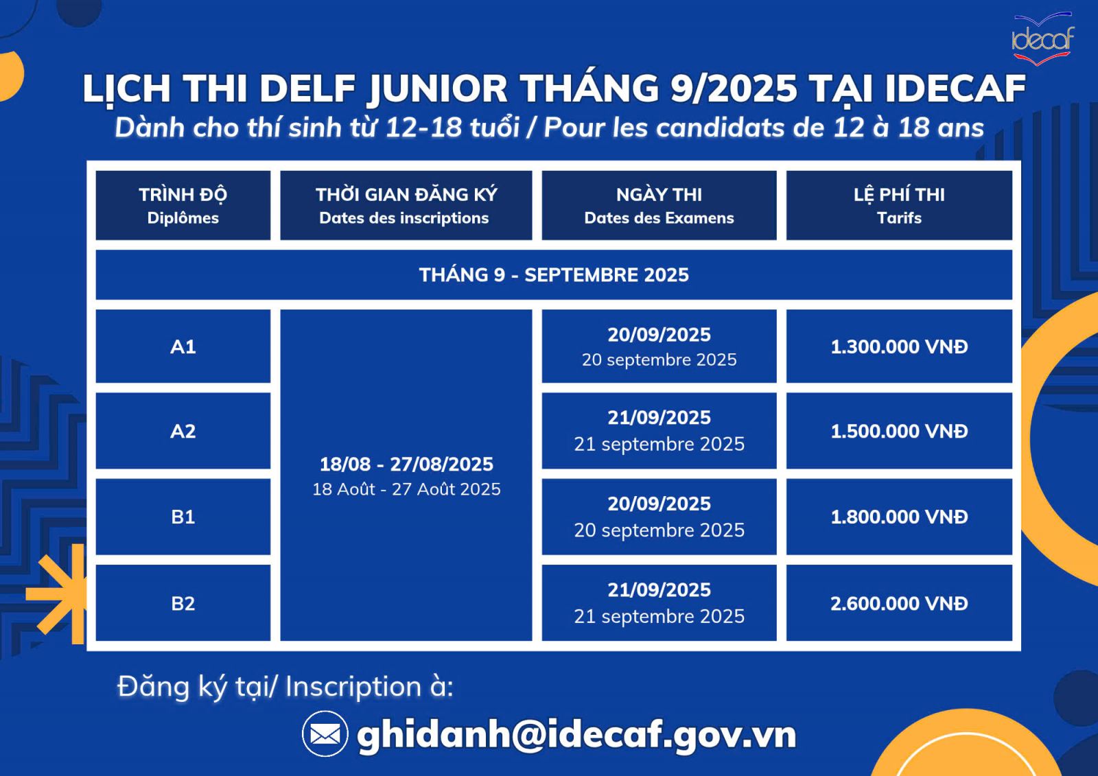 * Cách 2: Tải mẫu phiếu Đăng ký thi DELF TP và làm theo hướng dẫn tại https://idecaf.gov.vn/8/dang-ky-thi